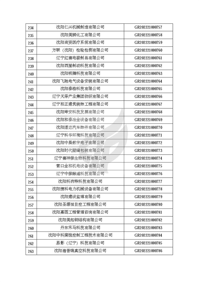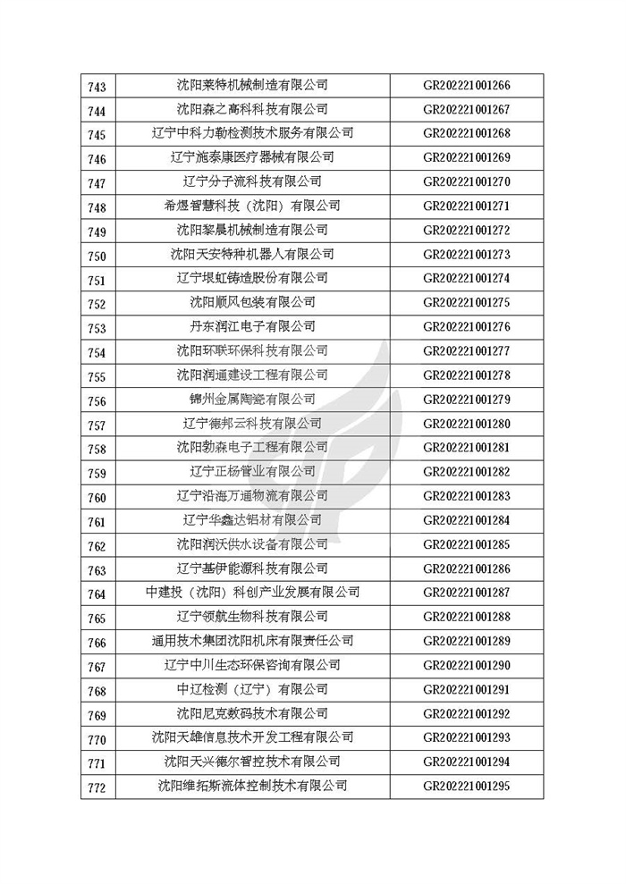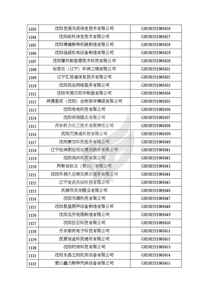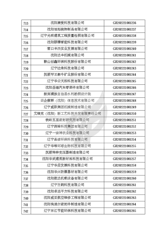 关于对辽宁省认定机构2022年认定的第二批高新技术企业进行备案的公告