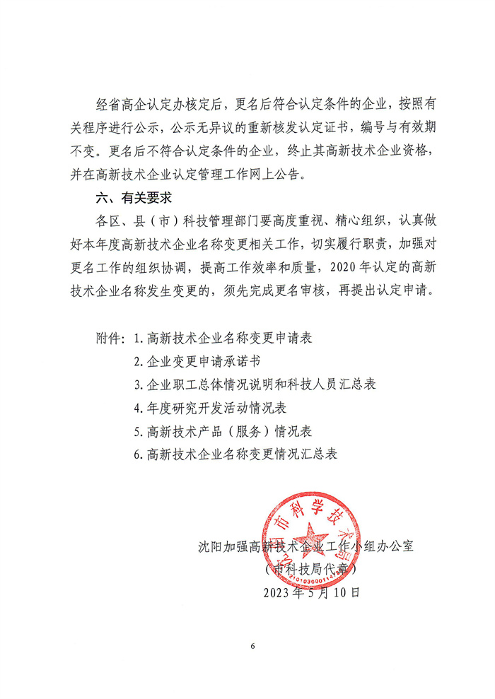 关于组织开展2023年沈阳高新技术企业名称变更工作的通知