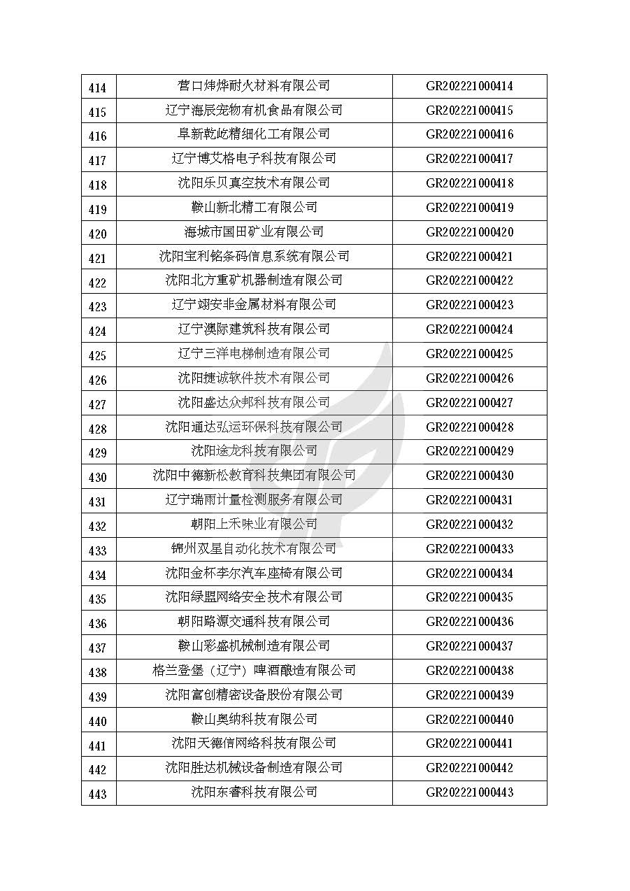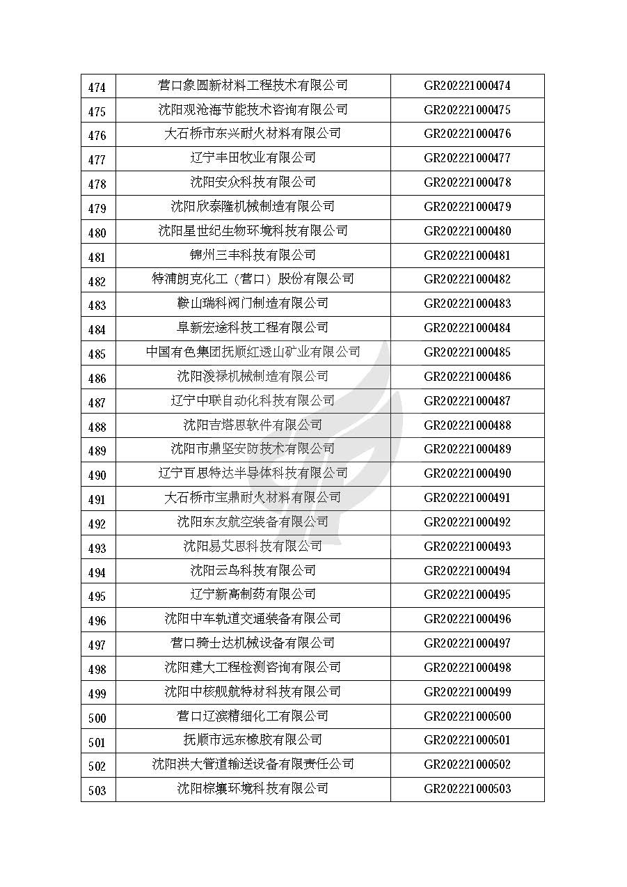根据《高新技术企业认定管理办法》(国科发火〔2016〕32号)和《高新技术企业认定管理工作指引》(国科发火〔2016〕195号)有关规定,现对辽宁省认定机构2022年认定的第一批523家高新技术企业备案名单(详见附件)予以公告。